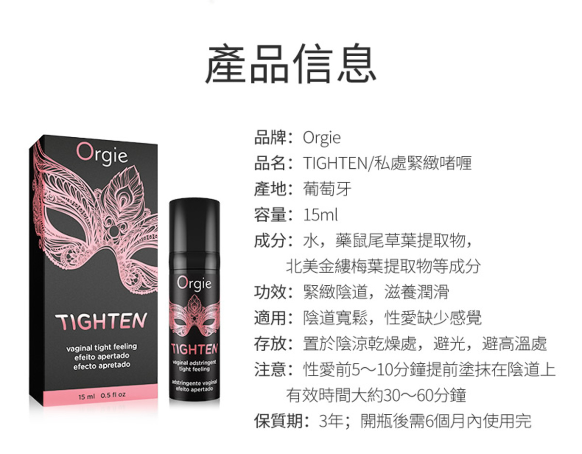 Tighten Gel 專為女士私處而設,能快速有效收縮蜜穴,提升陰部敏感度。草本植物精華,呵護妳的私處保持青春敏感。