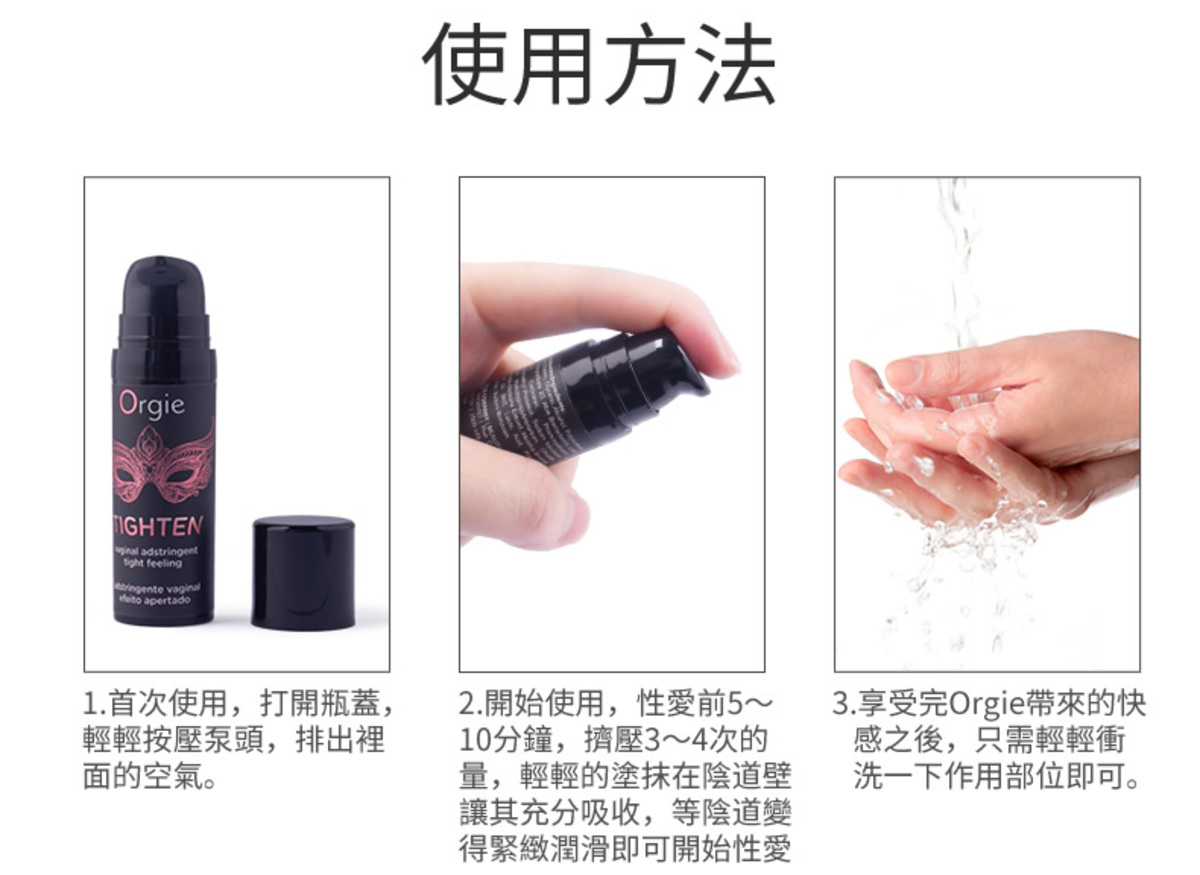 使用方法:性愛前5-10分鐘,塗抹於陰道內。有效時間30-60分鐘