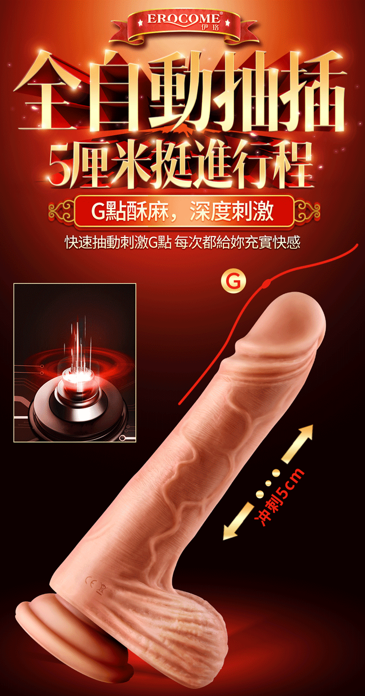 Erocome - Hercules吸盤式自動伸縮震動仿真陽具,夢幻般的組合,極具仿真造型加上震動和伸縮,8種伸縮震動模式+1鍵高潮模式勢必令你高潮不斷,強力吸盤讓你解鎖更多體位,五分鍾加熱功能猶如真人一般,每一下抽插都頂到深處。