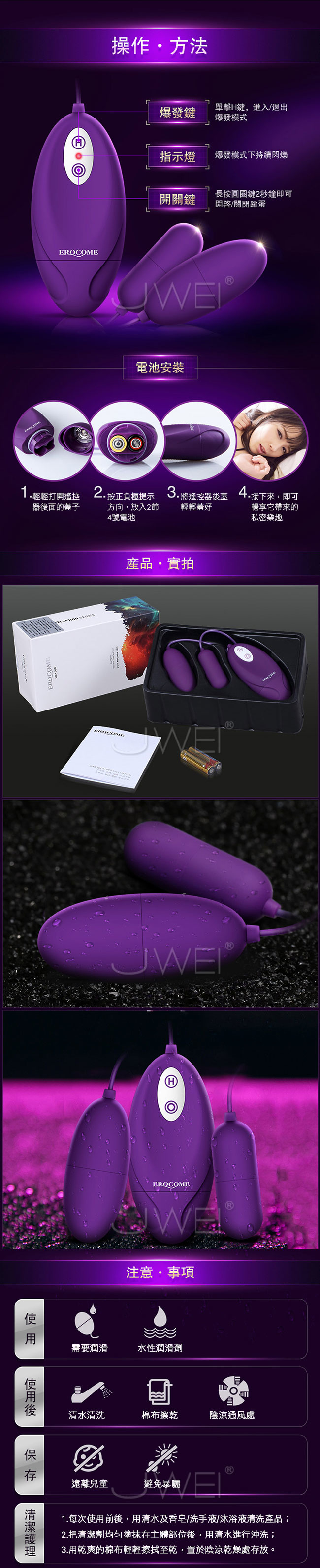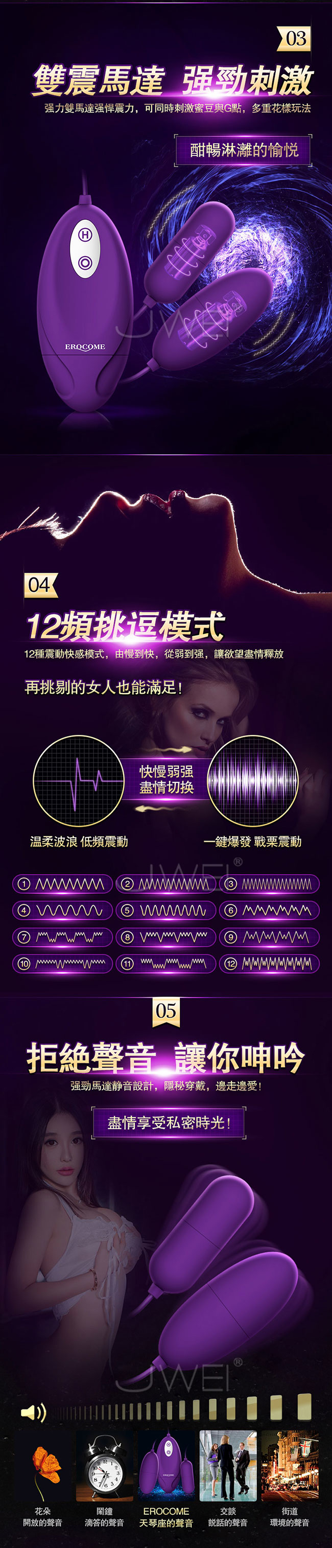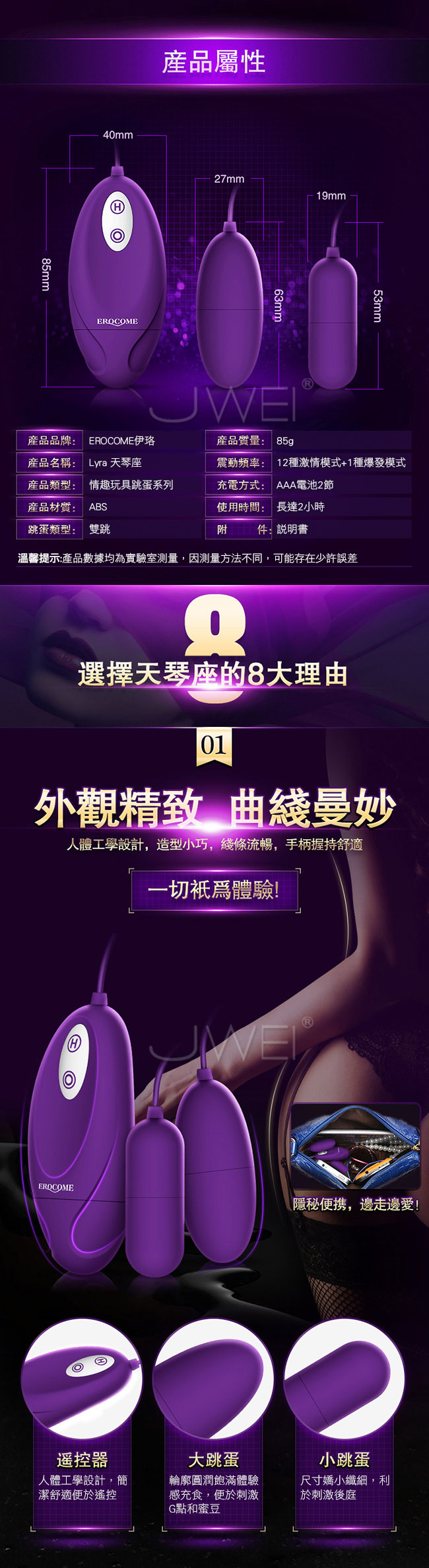 Erocome Lyra Duo 的雙頭震蛋配備強力雙馬達同時刺激蜜豆及G點或雙峰,12種震動模式+1鍵爆發模式,能滿足你所有想要的高潮模式,使用兩粒3A電池,使用非常簡單。