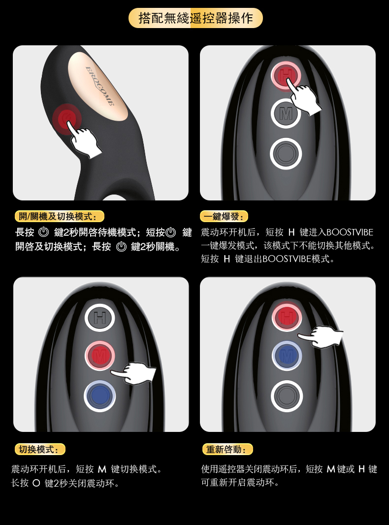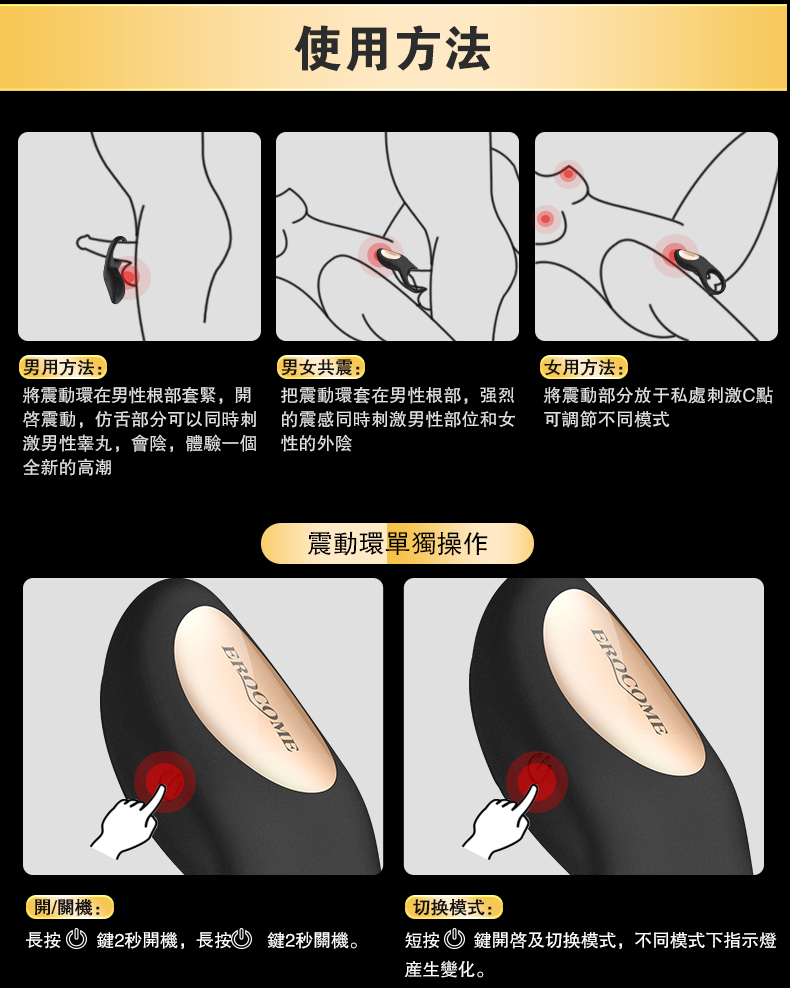 搖控震動鎖精環設計靈感來自古代羊眼環, 它以男用鎖精緩射為基礎,提高夫妻情趣,採柔軟矽膠仿舌外觀設計, 讓您鎖住時間鎖住性福。此款擁有持久緩射效果, 也有夫妻共震的多樣玩法,還可用於單人調情使用。