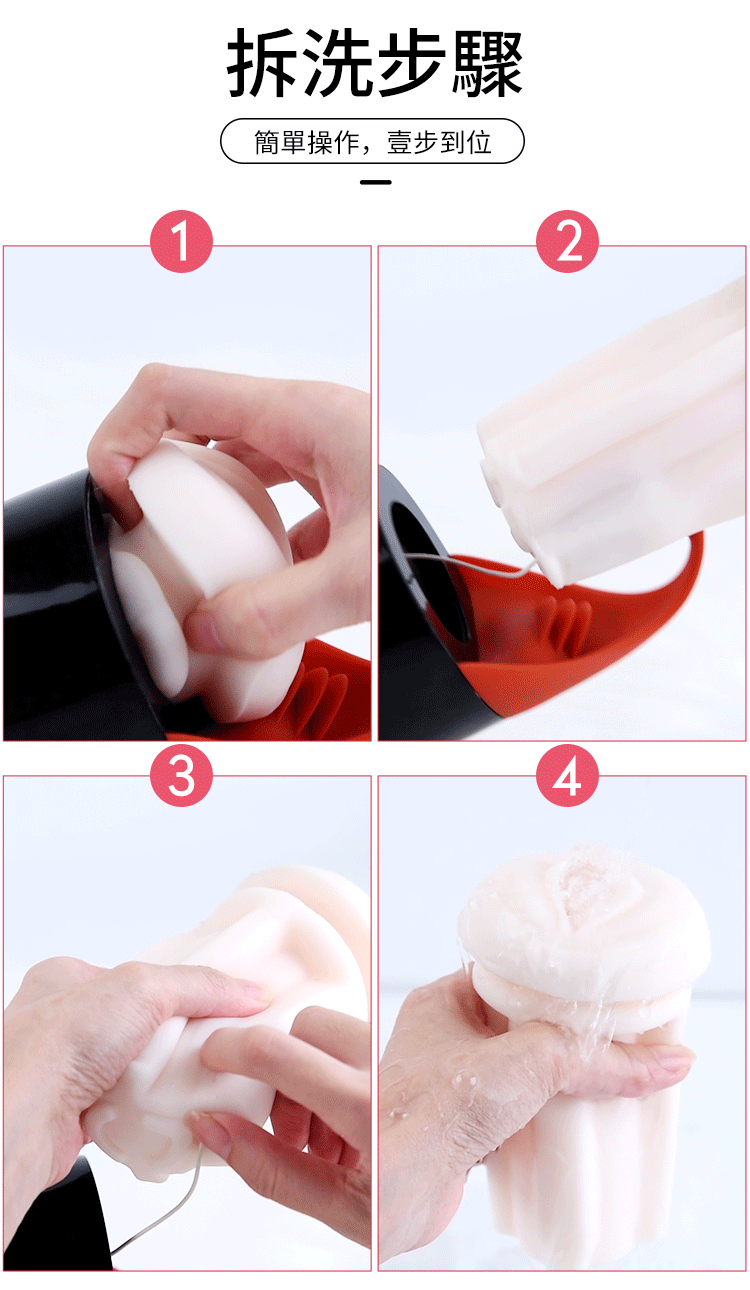 注意 : 內附震蛋連接著主體,切勿強行扯出膠體。清洗膠體時,先慢慢把膠體取出,會見到震蛋連接著膠體,把震蛋取出後將膠體清洗即可。抹乾後把震蛋放入即可,再把膠體放入主體。