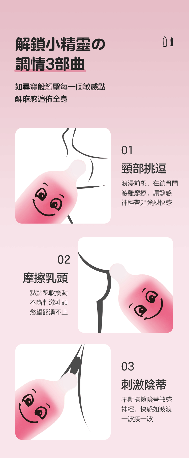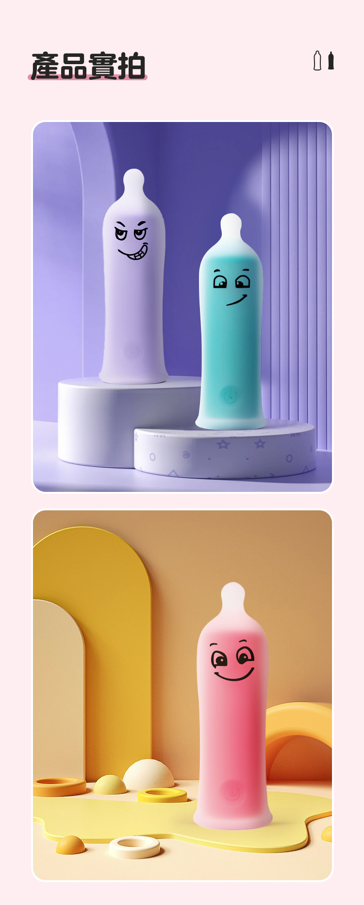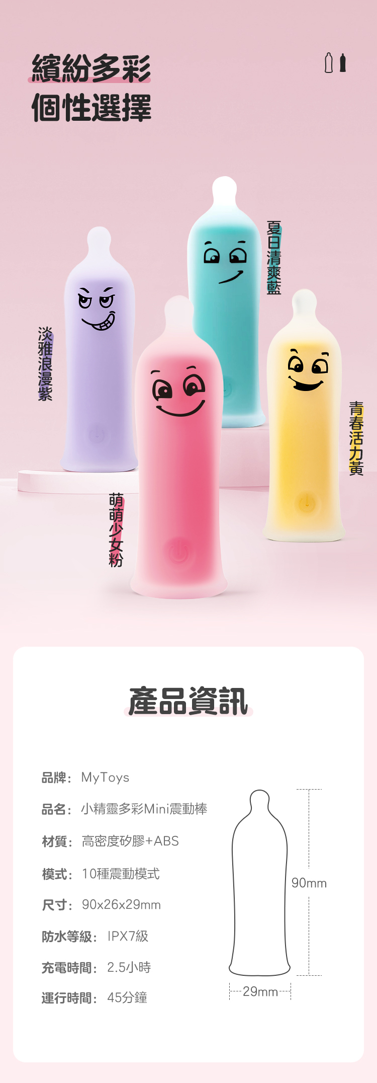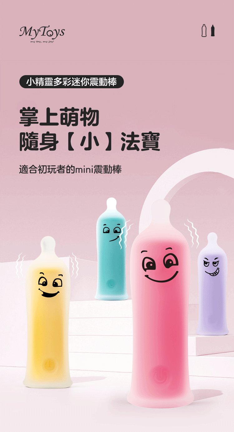 MyBullet 小精靈多彩迷你震動棒,設計來源是性生活中必不可少的避孕套造型,搭配上各種不同的搞怪表情,搞怪的同時又兼顧了可愛,妙趣橫生,拯救單調生活。繽紛多彩外形,全身穿著半透明是擋不住的強烈震顫,每分鐘4500 次的強烈震顫挑逗你敏感的小豆豆,妙趣高潮擋不住。親膚硅膠外衣,像一支綿彈果凍棒,讓你忍不住想要咬上一口。
