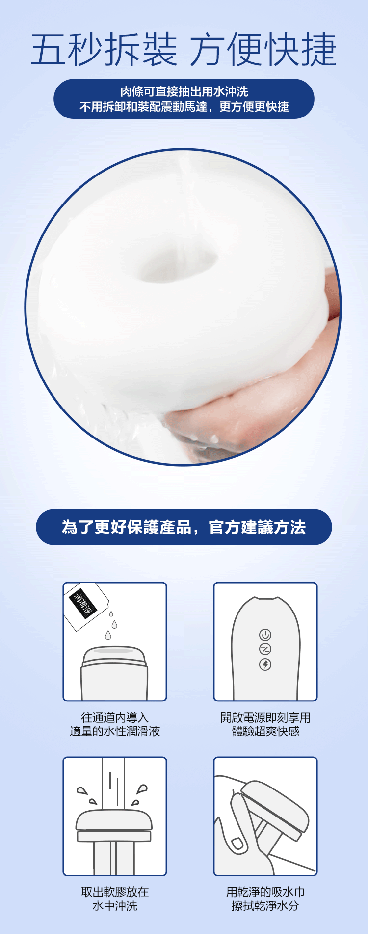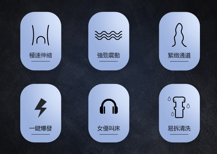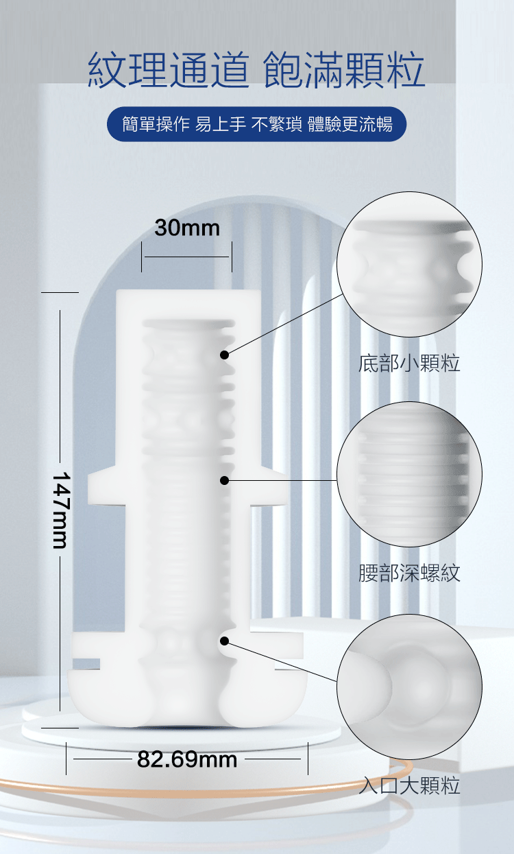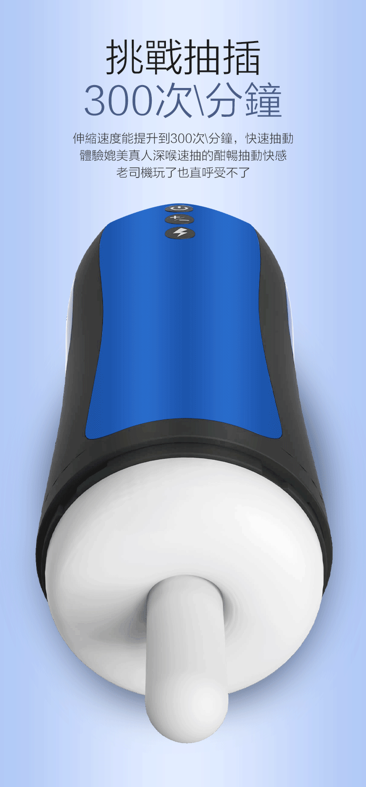 1分鐘你能抽插300次嗎?現在就有機會享受到這種爆發性的快感!內置有 7 種自動伸縮功能及振動模式,只需要單手就能操作,十分方便。入口處設大肉粒摩擦,中段螺旋坑紋,深處又有小肉粒親吻你的龜頭~加上真人發聲的叫聲,配合一鍵爆發,帶上耳機盡情享受那刺激無比的 1 分鐘吧!