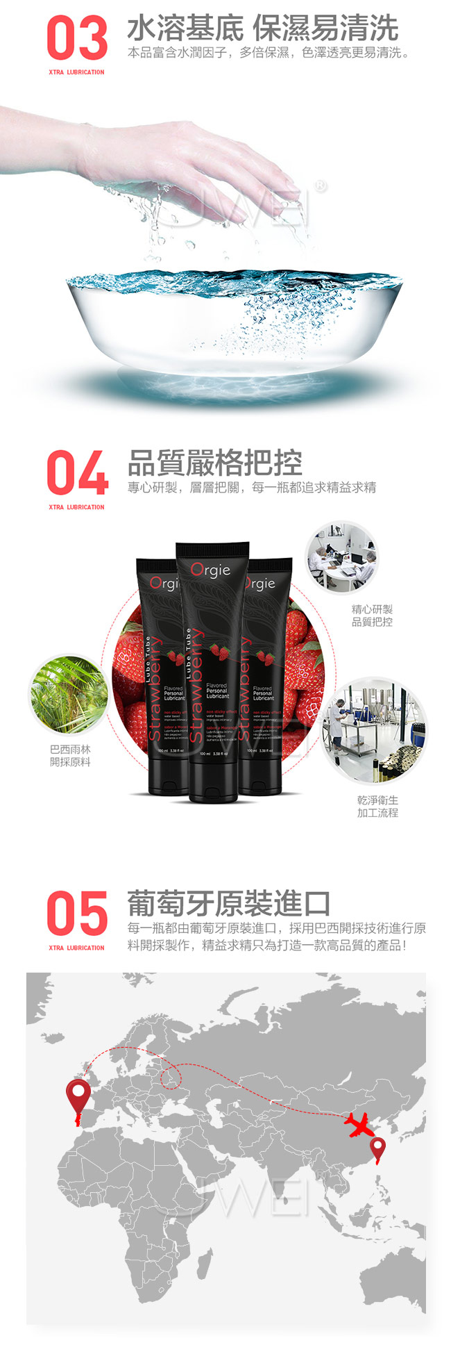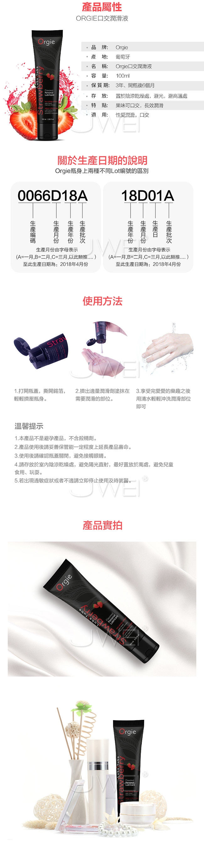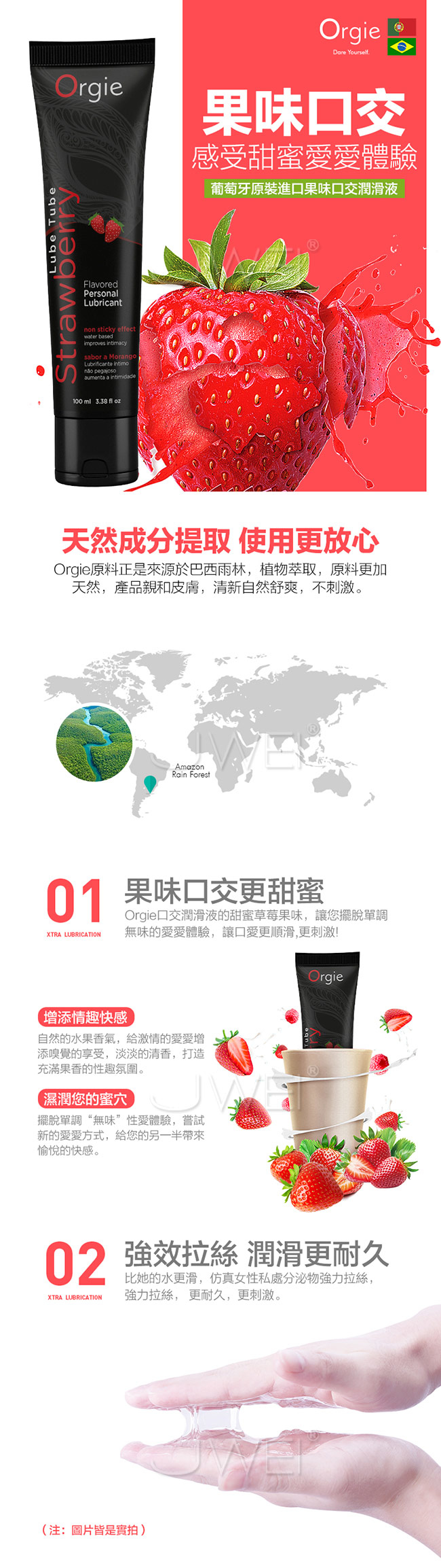 葡萄牙Orgie - LubeTube Strawberry草莓味口交潤滑液,使用天然成份提取植物萃取親和皮膚,自然舒爽讓您使用更放心。讓您感受甜蜜的口愛體驗,讓口愛更順滑更刺激!仿真女士私密處分泌液,強力拉絲,使用上更耐久,更刺激。本品為水潤因子,多倍保濕易清洗。與愛人嘗試新的性愛方式,帶來愉悅快感吧!