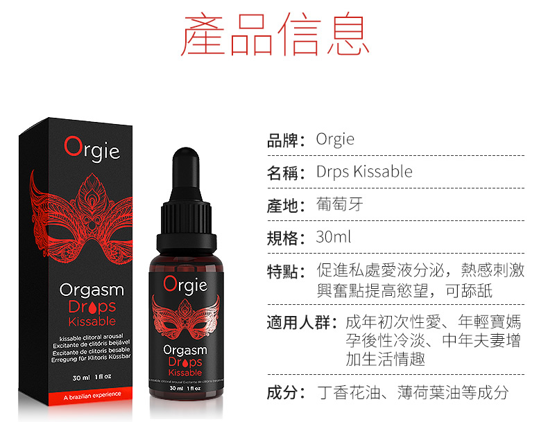 葡萄牙ORGIE ORGASM DROPS KISSABLE 可食用高潮液