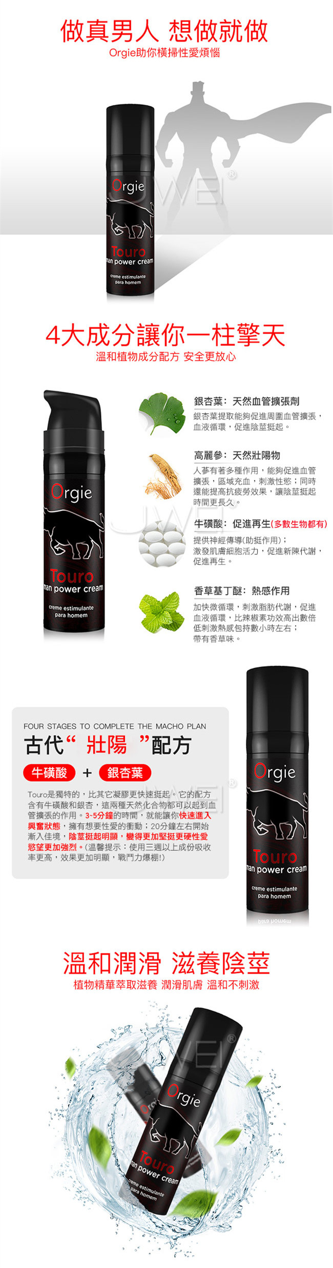 Touro 是獨一無二的,比其他凝膠更能促進勃起。它的配方含有牛磺酸和銀杏葉,這兩種天然化合物都可以作為血管擴張劑,以及人參,一種在中國和其他東方國家使用了幾個世紀的天然和公認的有效催情劑。