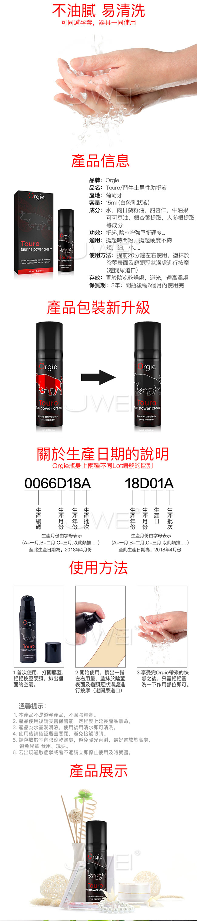 注意事項:本產品為外用品。避免塗抹於傷口及敏感皮膚;效果因人而異,如用後有任何不適,請停止使用,有需要可向醫生查詢。