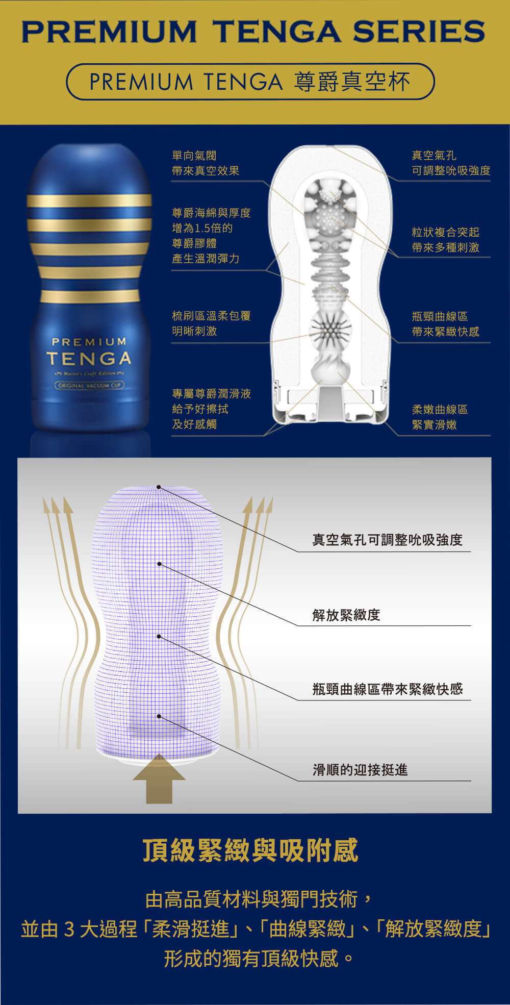 PREMIUM TENGA SERIES豪華杯系列,由甄別嚴選的頂級材料和十五年爐火純青的熟練技術製成。