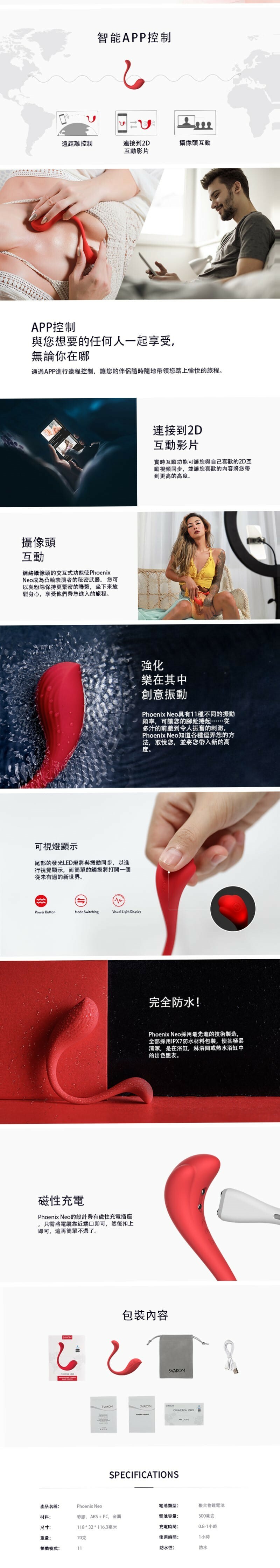 那麼遠這麼近,SVAKOM - PHOENIX NEO 2 智能無線遙控震蛋,智能操控設計,通過智能手機SVAKOM APP,以手機連接PHOENIX NEO 2帶你體驗現代科技結合成人玩具的新樂趣!無視距離拉近關係,隨時享樂只需手指輕點手機,簡單方便。