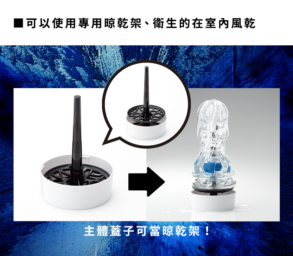 而飛機杯的設計為可拆卸內膽構造,清洗簡單方便,配送了風乾架一個,在你清洗後只要把內膽放置在架上便能自然風乾,保養和收藏也非常方便。