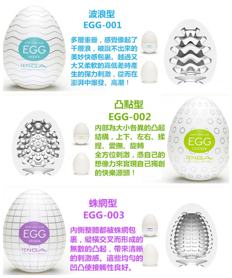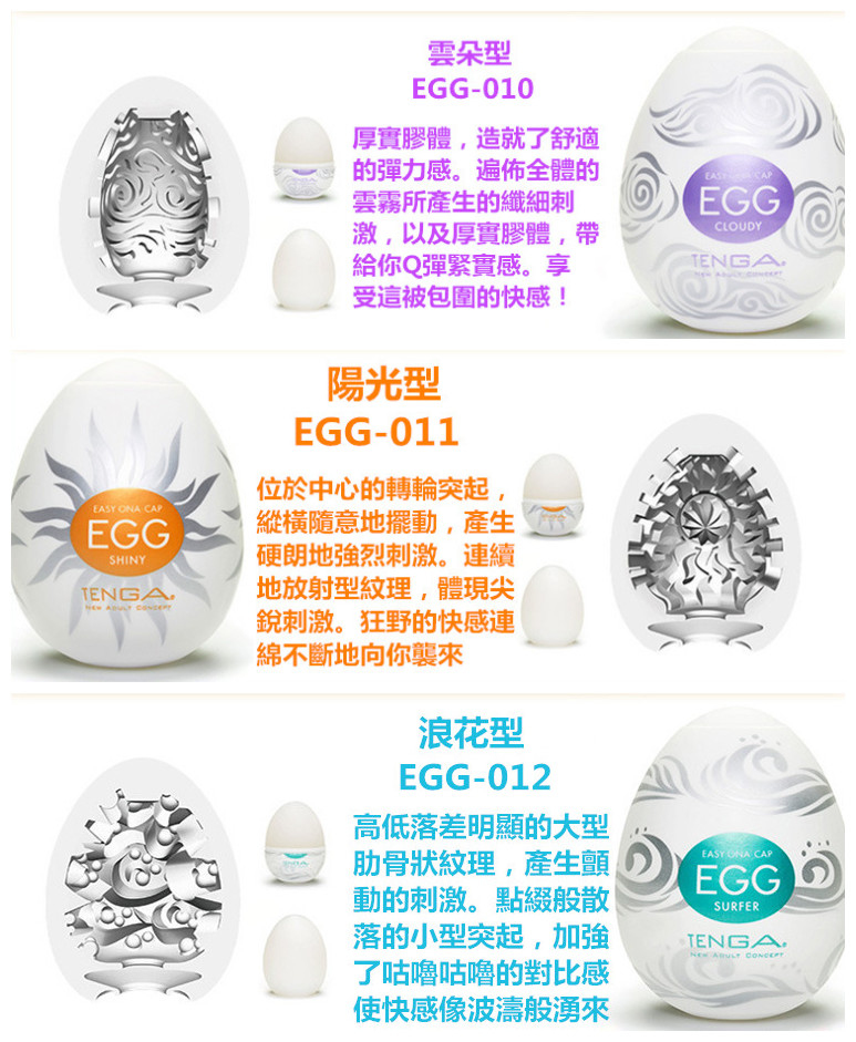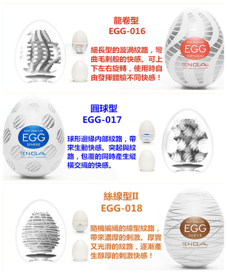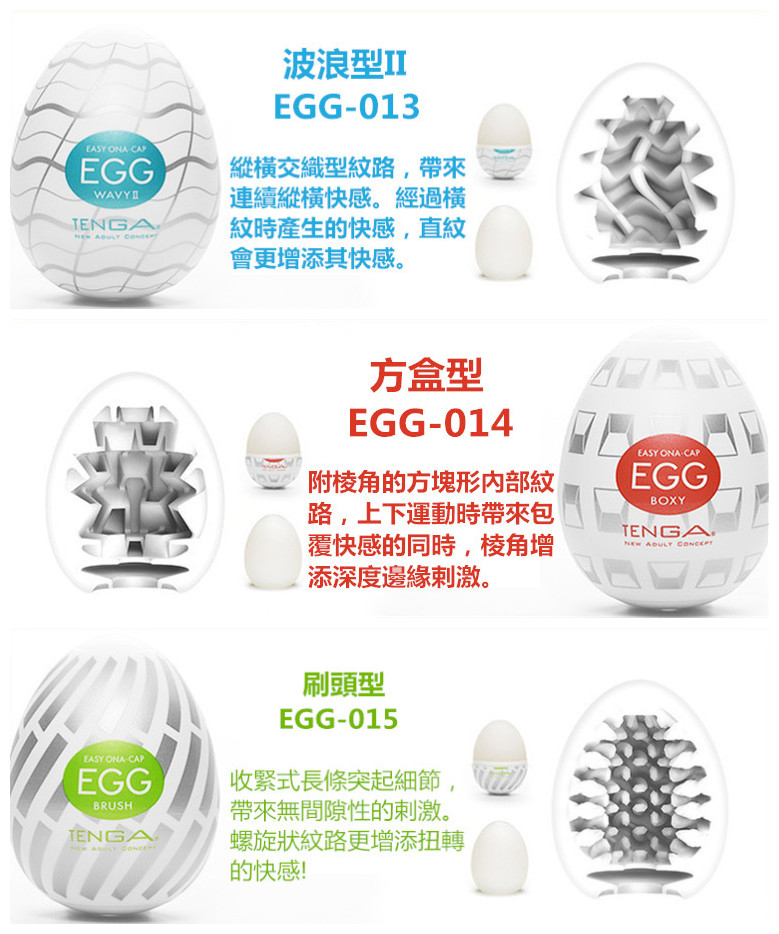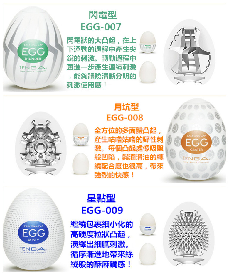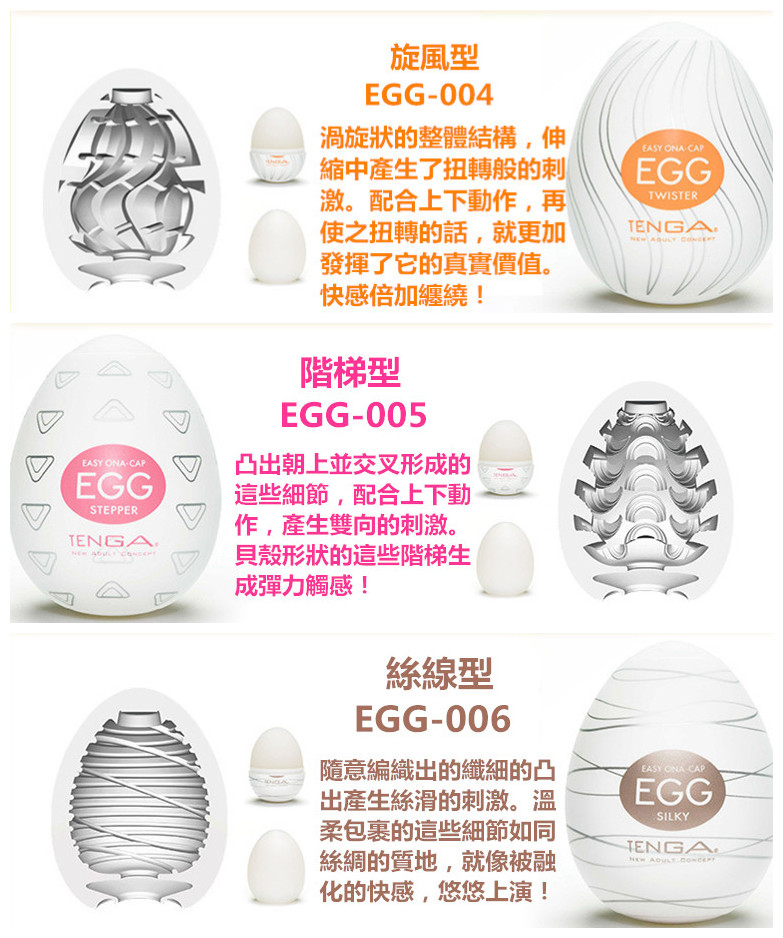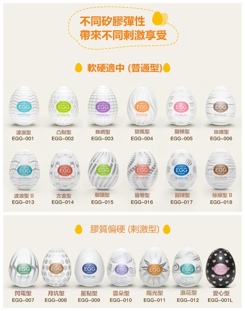 Tenga egg共有22款供選擇,在此組套裝中,客人可以優惠價錢選擇其中6款自慰蛋,一次嘗試6種不同體驗!