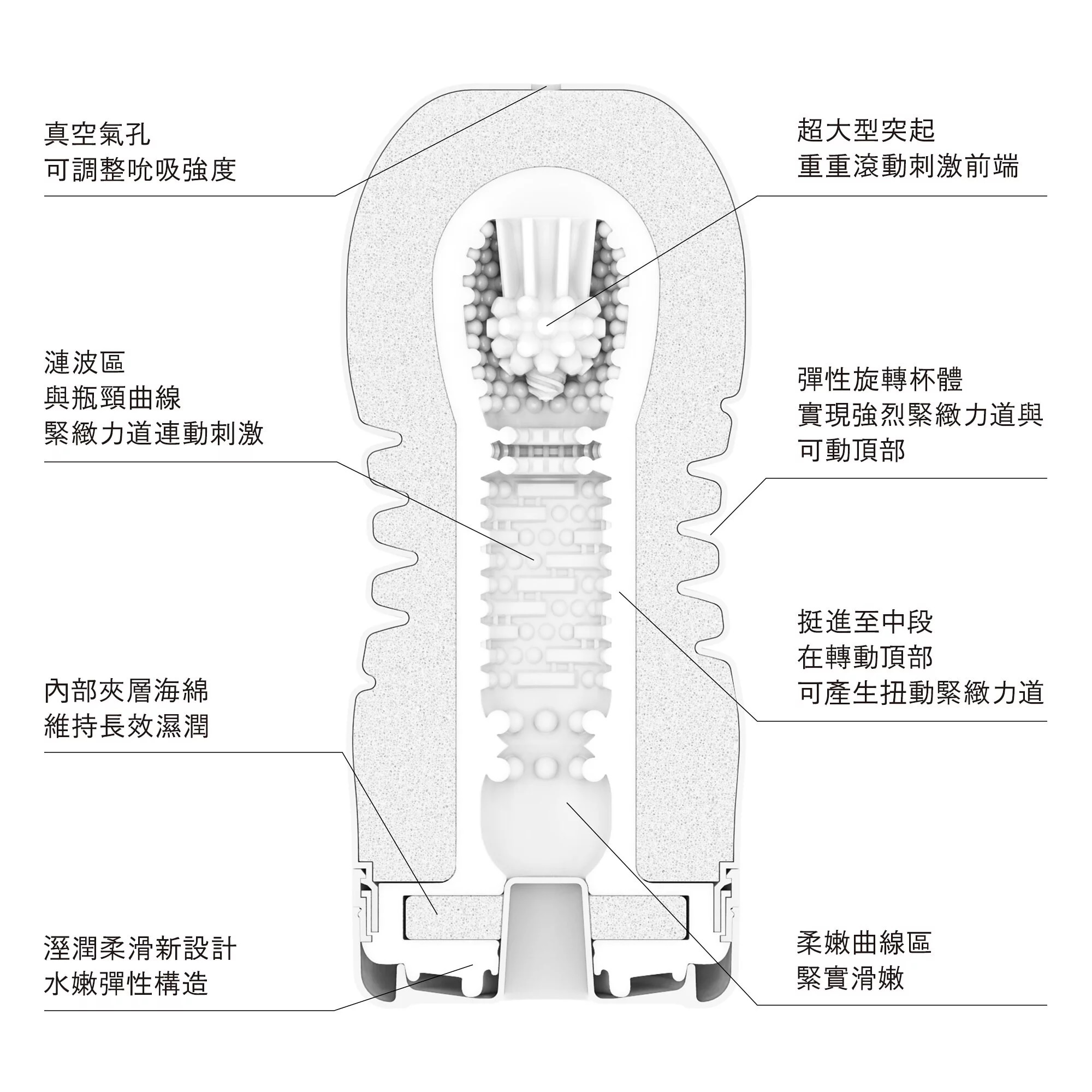 曲線型新螺旋杯體,還能提供您連綿不斷的強烈緊緻刺激。