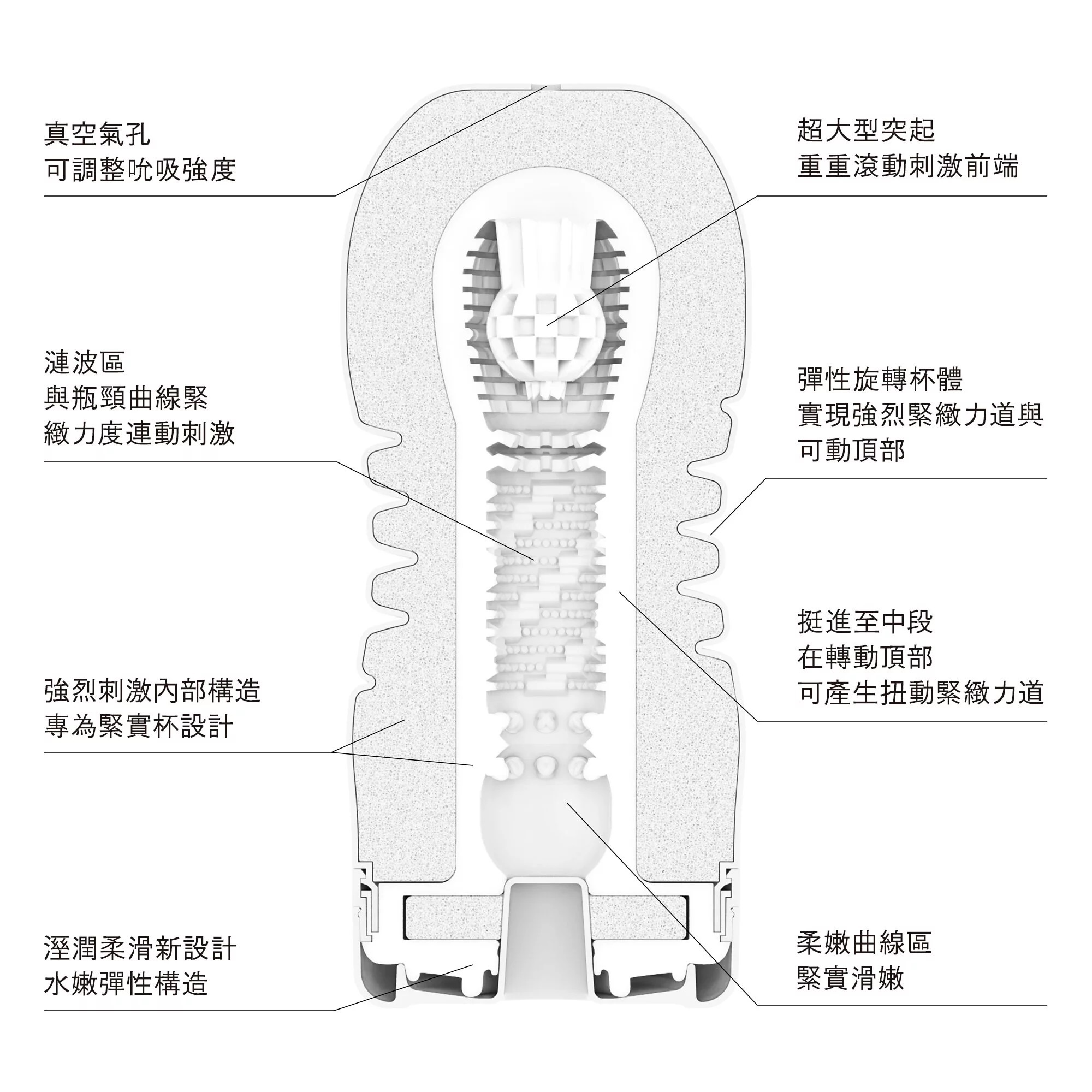 曲線型新螺旋杯體,還能提供您連綿不斷的強烈緊緻刺激。