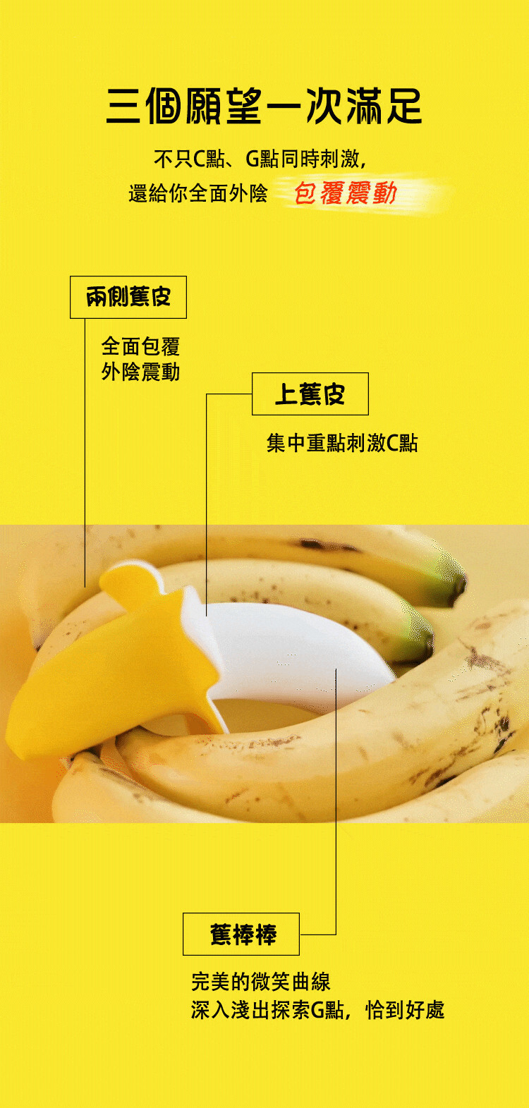 香蕉震動的時候蕉皮也會一起震,一次可以刺激三個點。